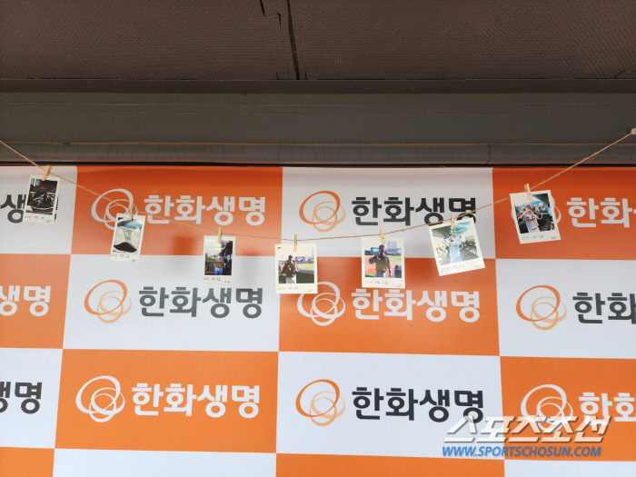 | 대전야구장 1루쪽 더그아웃에는 올시즌 홈런을 때린 선수의 기념 사진이 걸려있다. 총 7장 중 4장은 채은성이 사진이다. 대전=민창기 기자 huelva@sportschosun.com |