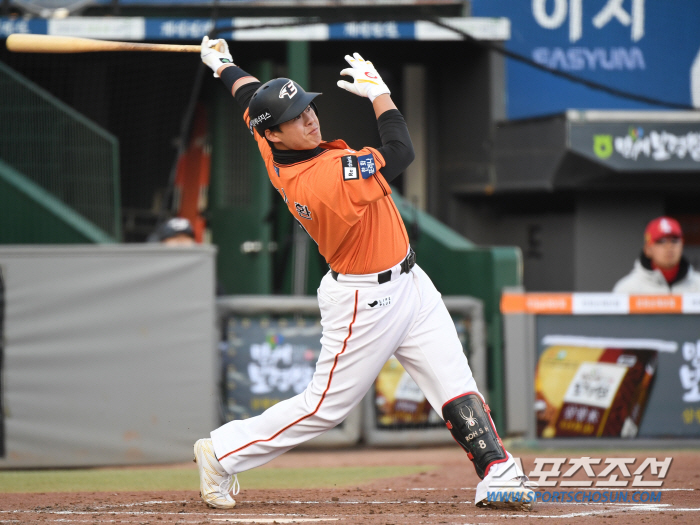 | 지난 11일 광주 KIA전 8회 김인환이 1점 홈런을 터트렸다. 광주=최문영 기자 deer@sportschosun.com |