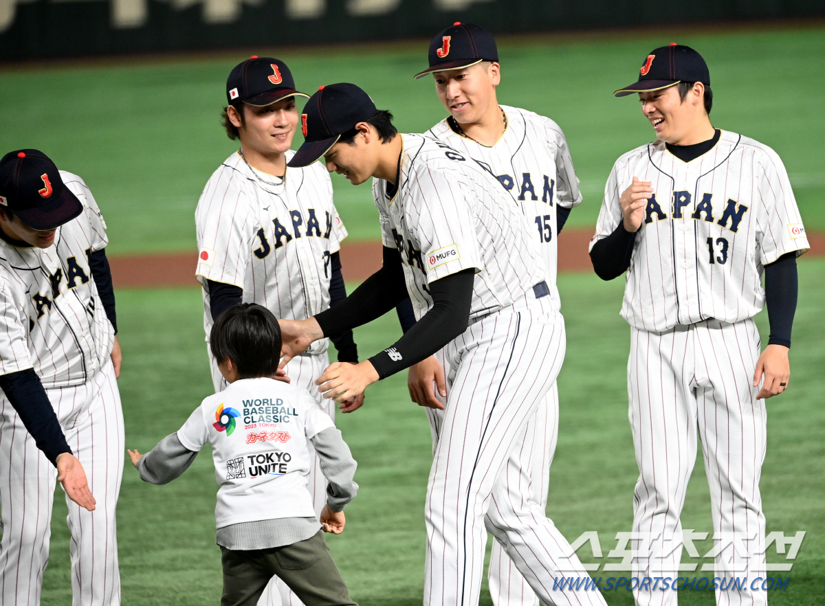 월드베이스볼클래식(WBC) 2023 일본과 체코의 경기가 11일 일본 도쿄돔에서 열렸다. 경기 전 일본 오타니가 선수들과 하이파이브를 하고 있다. 도쿄(일본)=허상욱 기자wook@sportschosun.com/2023.03.11/