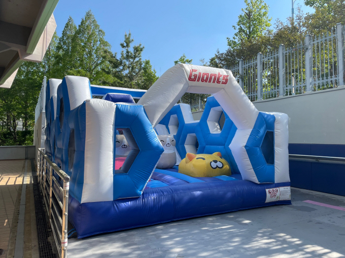 롯데 구단은 2일 에어바운스를 사직구장 내 추가 설치했다고 밝혔다. 해당 시설은 지난 키움히어로즈와의 주말 3연전에 시범 운영되었으며, 안전사고 예방 인력과 함께 오는 5일부터 홈경기 때 상시 이용 가능하다.