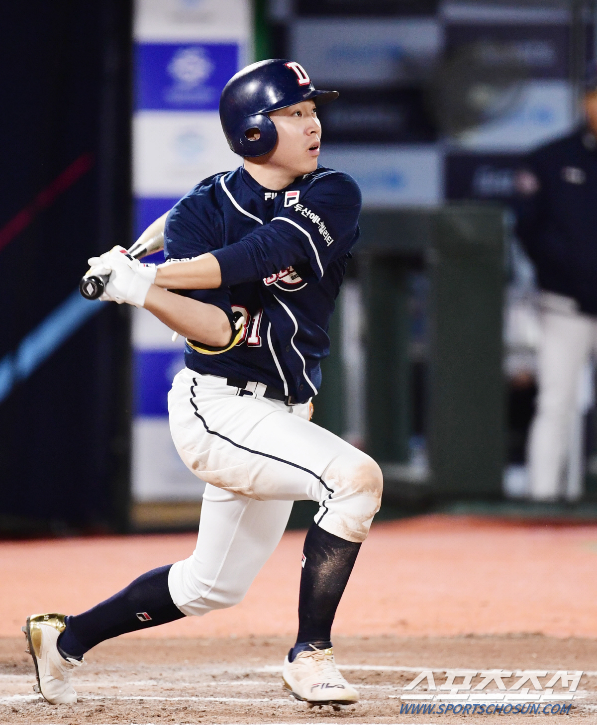 이 감독은 이날 KIA전에 허경민(3루수)-박계범(유격수)-양의지(지명 타자)-양석환(1루수)-송승환(우익수)-로하스(좌익수)-장승현(포수)-이유찬(2루수)-조수행(중견수)을 선발 라인업에 포함시켰다. 양의지가 지명 타자로 나서고, 장승현이 포수 마스크를 쓴다. 선발 투수는 김동주다.