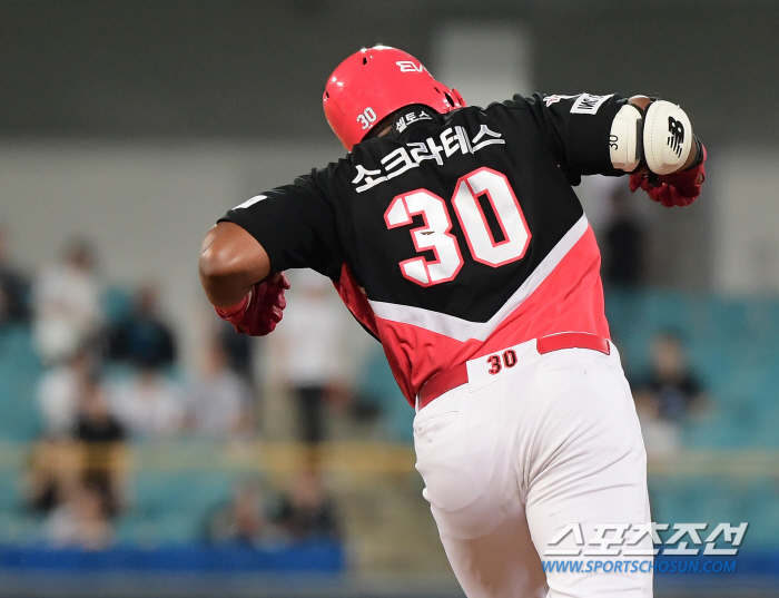 16일 대구 삼성라이온즈파크에서 열린 KIA 타이거즈와 삼성 라이온즈 경기. 7회초 1사 1, 3루 소크라테스가 3점 홈런을 친 후 환호하고 있다. 대구=정재근 기자 cjg@sportschosun.com/2023.5.16/