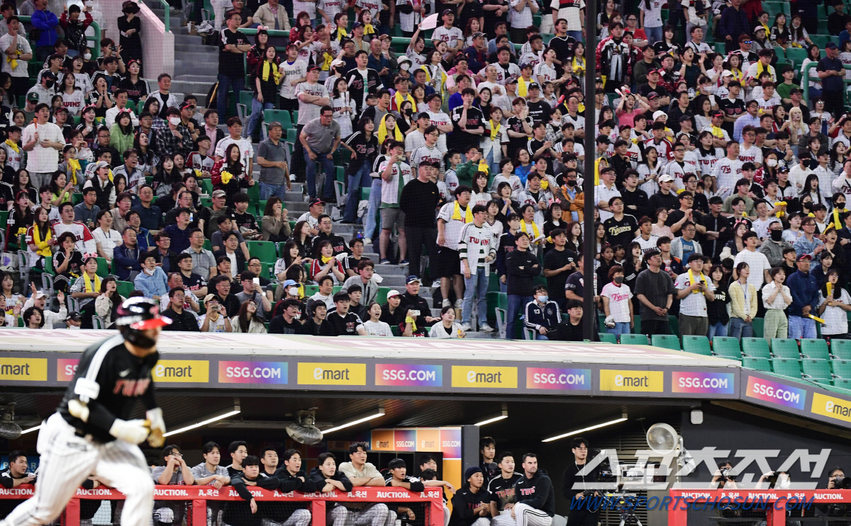 하루 전인 화요일에 열린 경기도 못지 않았다. 23일 LG-SSG전은 1만2508명의 관중이 모였다. 보통 평일 야간 경기는 1만명만 모여도 '흥행 대박'이라는 평가를 받는다. 두 팀은 이틀간 3만명에 가까운 관중을 불러 모았으니 '초대박'이라고 표현해도 틀리지 않다. 홈팀인 SSG를 응원하는 관중들 뿐만 아니라 원정팀 LG를 응원하는 관중들도 상당수가 눈에 띄었다.