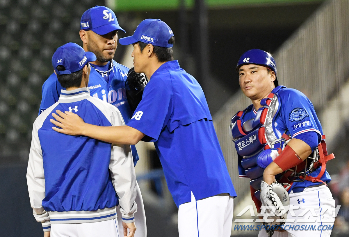 아니나 다를까 벤치에서 정현욱 투수코치가 분주하게 마운드에 올랐다. 통역을 대동해 잠시 이야기를 나눴다. 진지한 표정으로 얼굴을 바짝 대고 무언가를 당부하는 듯한 모습.