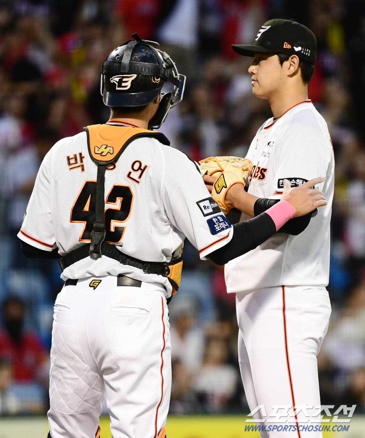 5월 들어 문동주는 급격한 하락세다. 지난 7일 KT전에서 5이닝 3안타 3볼넷 5탈삼진 1실점으로 시즌 2승을 거둔 뒤, 13일 SSG전에서 2⅓이닝 7안타 3볼넷(2사구) 7실점으로 무너졌고, 19일 LG전에서도 4이닝 4안타 4볼넷 4탈삼진 3실점으로 패전 투수가 됐다. 시즌 초반엔 150㎞ 후반 강속구와 변화구를 적절히 섞어가는 모습을 보여줬지만, 5월 들어 커맨드가 제대로 이뤄지지 않으면서 볼넷-안타-실점 패턴이 이어졌다. KIA전에서 반등을 꿈꿨지만, 이번에도 같은 모습이 이어졌다.