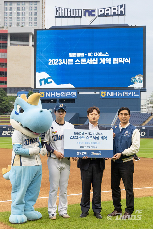[창원=스포츠조선 정현석 기자]NC 다이노스가 30일 의료법인 신화성의료재단 잘본병원(이하 잘본병원, 이사장 이상준)과 2023시즌 스폰서십 협약을 맺었다. NC와 잘본병원은 지난해 선수단 재활 지원을 위한 업무협약으로 인연을 맺은데 이어 올해는 파트너로서 함께하기로 했다.