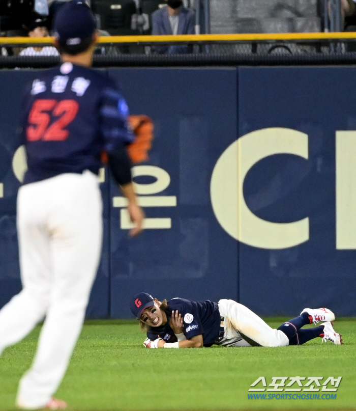 타구 맞는 고통보다 잡지 못한 아쉬움이 더 컸다. 걱정할 동료 위해 벌떡 일어선 황보르기니, 이젠 다치지 않을게요[잠실 현장]