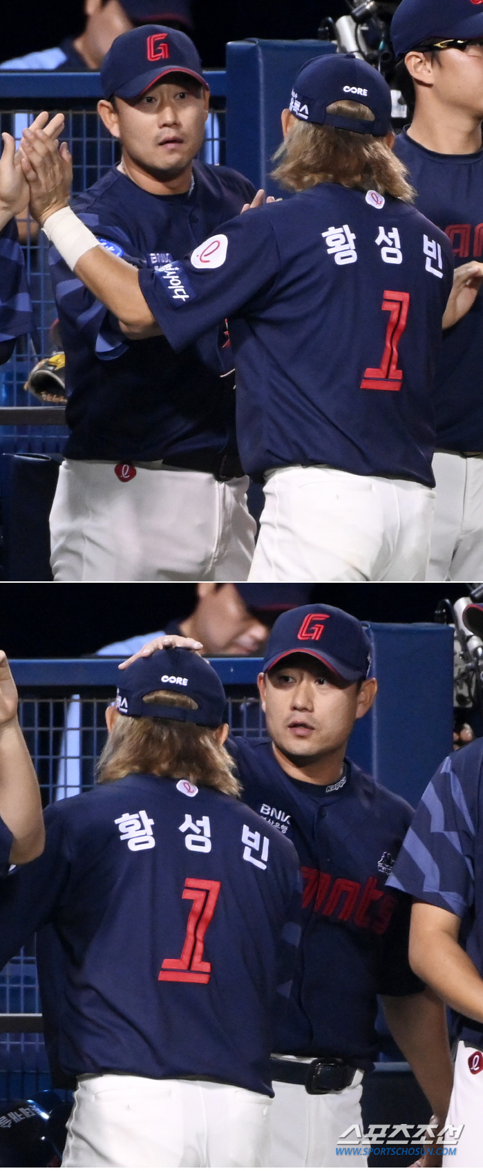 | 황성빈이 공에 맞는 장면을 생생하게 지켜본 김상수도 황성빈을 다독이며 격려했다 |