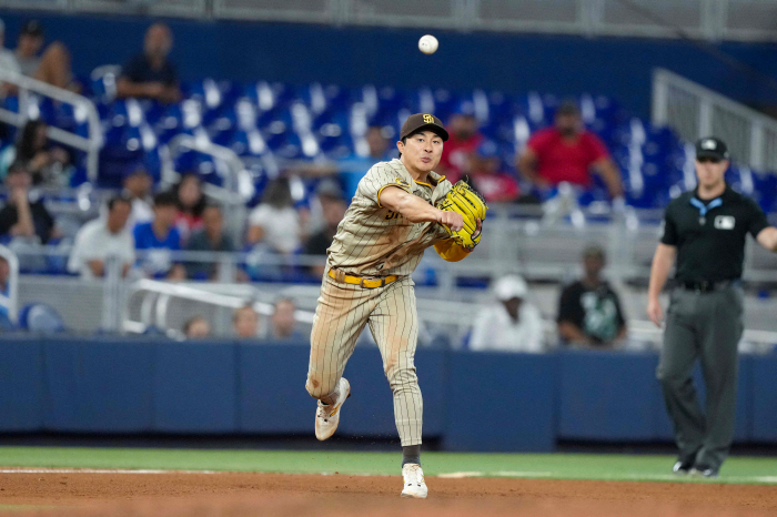 김하성은 9회초 2루 수비에 투입됐다. 선두타자 크리스토퍼 모렐이 친 타구가 투수를 지나 애매하게 굴러갔다. 김하성이 번개같은 스피드로 달려 나와 타구를 낚아챘다. 1루에 러닝 스로를 시도, 깔끔하게 아웃카운트 1개를 추가했다.
