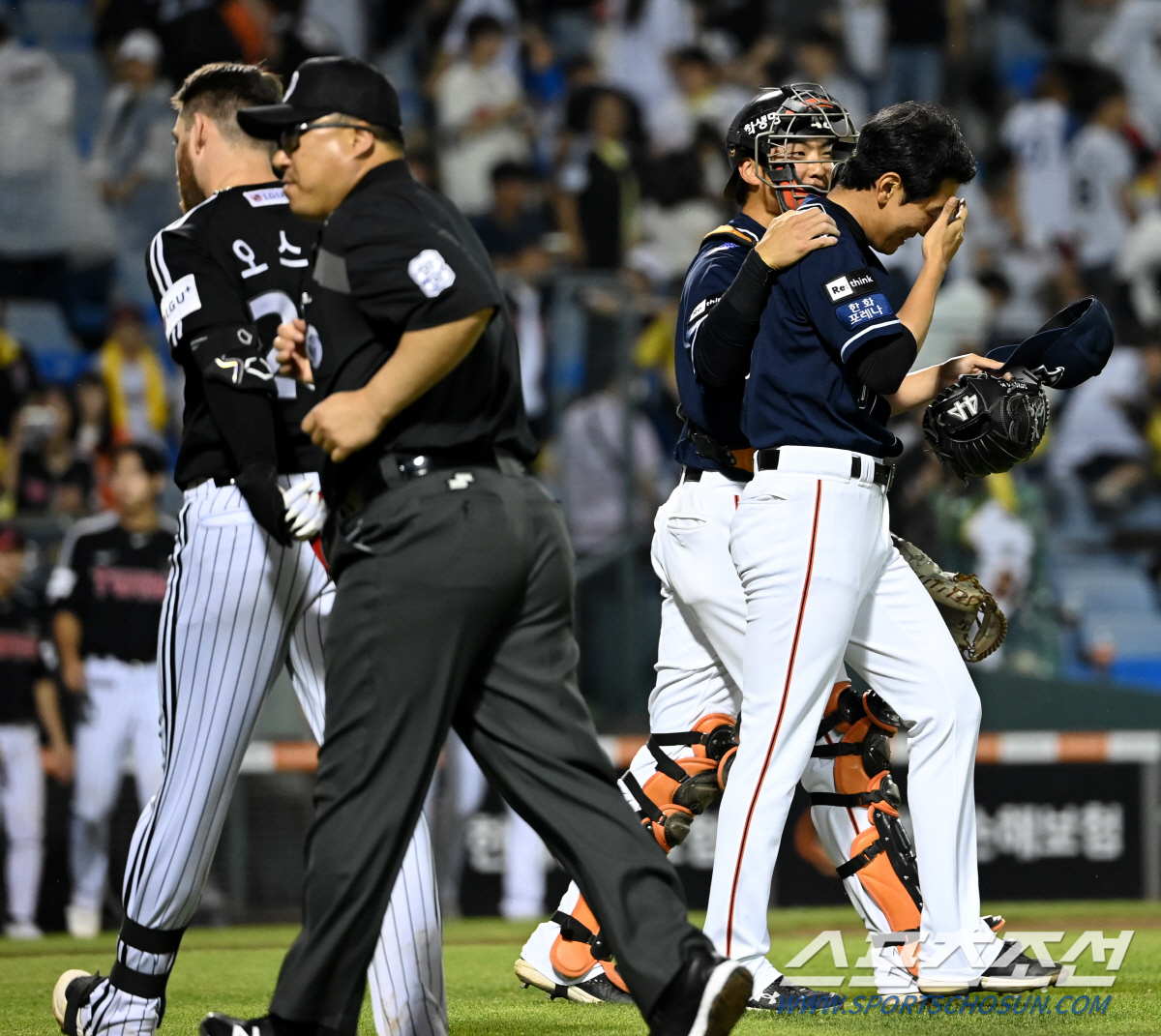 2023 KBO리그 LG 트윈스와 한화 이글스의 경기가 10일 대전 한화생명이글스파크에서 열렸다. 한화가 7대0으로 승리했다. 경기를 끝낸 송윤준 박상언 배터리가 기쁨을 나누고 있다. 대전=허상욱 기자 wook@sportschosun.com/2023.06.10/