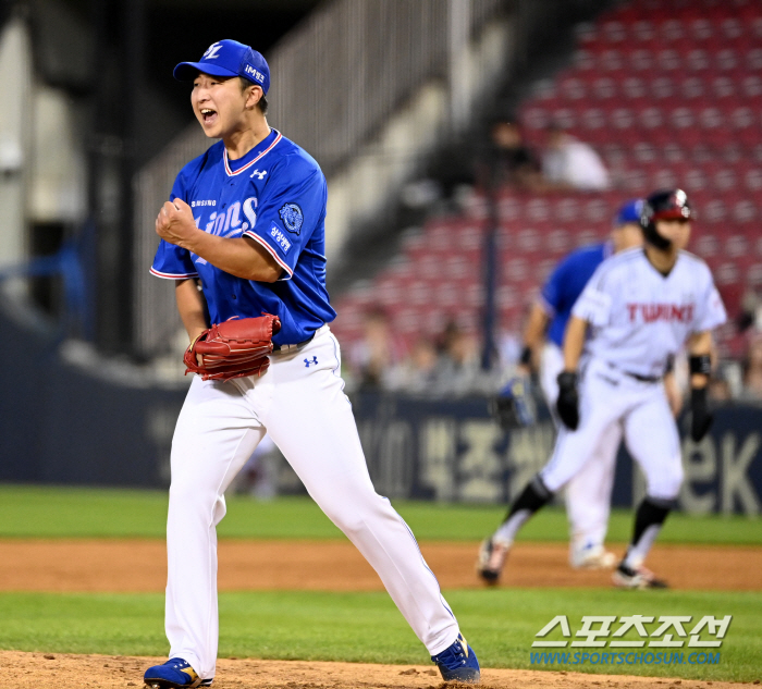 2023 KBO리그 삼성 라이온즈와 LG 트윈스의 경기가 13일 잠실야구장에서 열렸다. 5회말 2사 1,2루 삼성 최채흥이 LG 김민성을 삼진으로 처리한 후 환호하고 있다. 잠실=허상욱 기자 wook@sportschosun.com/2023.06.13/