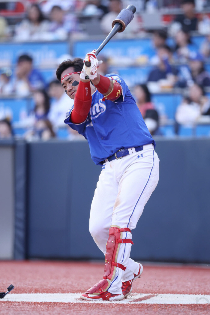 라인업 중 가장 뜨거운 타자 중 하나인 강민호가 5연패 중 쉴 리가 없었다. 지명타자로 배치됐다.