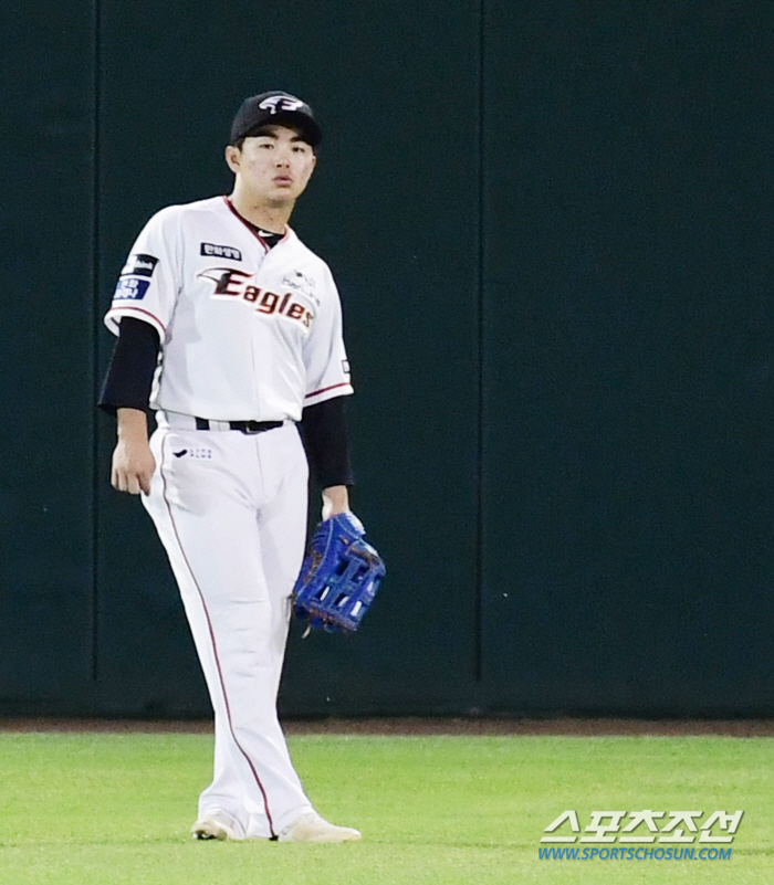 [대전=스포츠조선 송정헌 기자] KBO리그 최초의 기록을 달성한 KIA 최형우의 홈런볼을 한화 중견수 문현빈이 관중석으로 다시 던져주는 실수를 범하고 말았다.