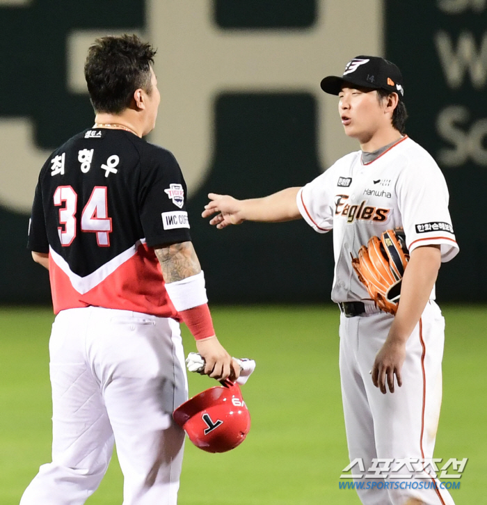 6회 세 번째 타석에서 볼넷으로 출루한 최형우에게 한화 정은원 2루수가 다가와 대신 사과를 전했다. 루키 문현빈의 실수였다고 대신 사과의 말을 전했다. 경기 도중 만난 최형우도 괜찮다고 미소를 지어 보였다.