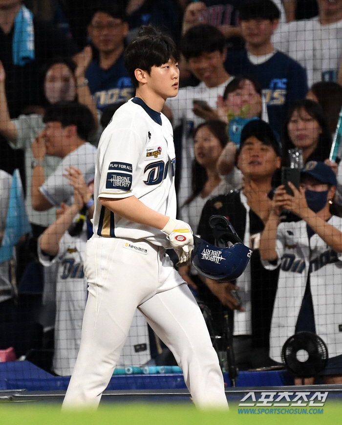 그냥 지켜보다가 나오지 않겠나 했지만 아니었다. LG 투수 박명근의 초구 148㎞의 직구를 지켜본 전사민은 2구째 147㎞의 직구를 강하게 당겨쳤다. 타구가 꽤 빠르게 굴렀고 3루수 문보경이 다이빙캐치로 잡아내 1루로 송구해 아웃. 빠른 공에 안타성 타구를 친 것만으로도 충분히 박수를 받을 수 있는 타격이었다.