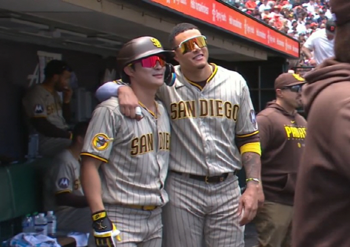 김하성이 홈을 밟고 양팔을 벌려 세리머니를 펼치자 다음 타석을 기다리던 페르난도 타티스 주니어가 더 감격적인 표정으로 그를 맞았다. 더그아웃으로 김하성이 들어오자 마차도는 김하성에 어깨동무를 하고 함께 사진을 찍기도 했다.