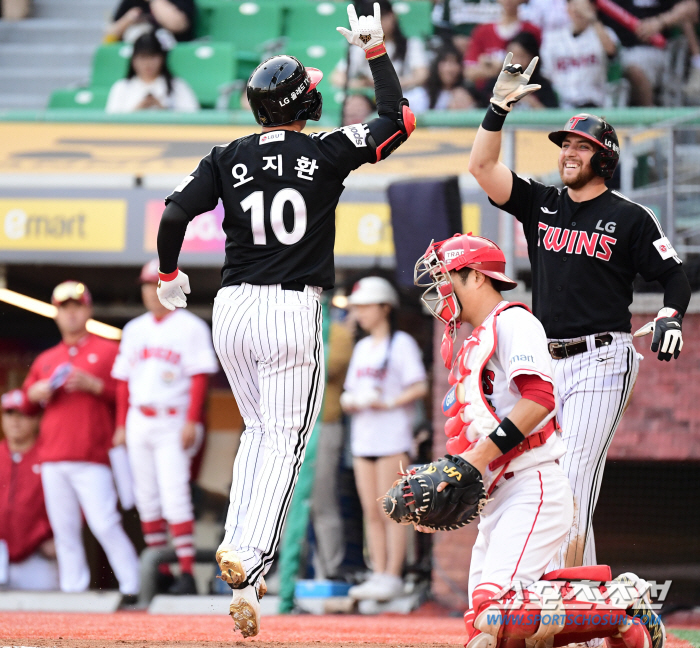 이후 오스틴은 2루 도루까지 성공시켰다. 2사 2루에서 오지환이 오원석을 상대로 투런 홈런을 터뜨렸다. 오지환은 자신의 올 시즌 첫 홈런을 2점짜리 홈런으로 장식했고, LG는 3-0으로 앞섰다.
