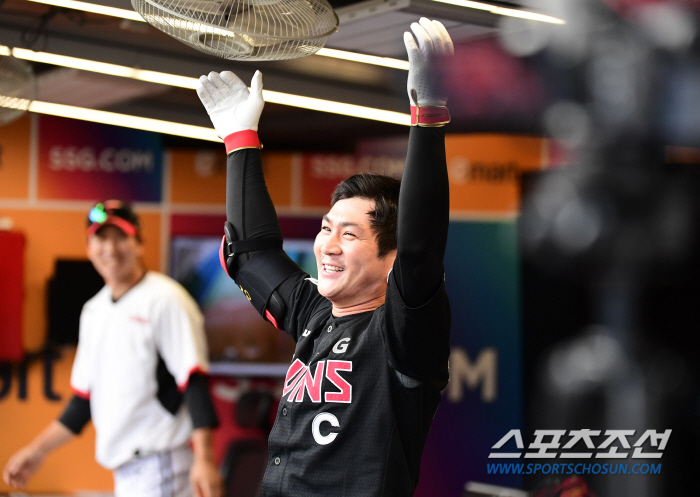 27일 인천 SSG랜더스필드에서 SSG와 LG의 경기가 열렸다. 5회에 이어 6회에도 홈런을 날린 김민성. 인천=송정헌 기자songs@sportschosun.com/2023.06.27/