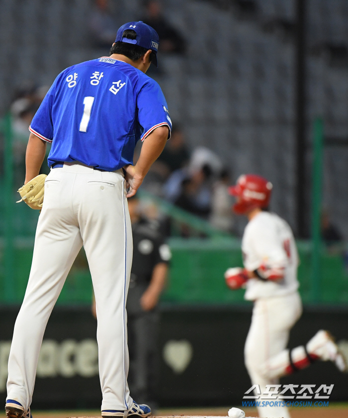 선택의 여지가 없었다. 유일한 약점인 몸쪽 높은 코스를 보고 던질 수 밖에 없었다. 생존을 위한 몸부림이었다. 이 과정에서 공이 유니폼에 스쳤고, 큰 점수 차에 최 정이 잠시 오해의 시선을 던졌지만 이내 1루로 나갔다. 양창섭은 모자를 벗어 정중히 사과했다.