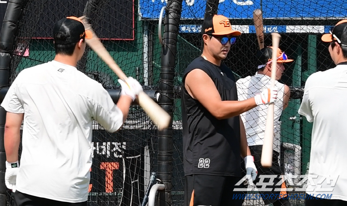 의장대 근처에도 못 가봤지만 대장 독수리 채은성의 조련 속에 수준급 '배트 돌리기' 신공을 연마하는 동생 독수리들의 모습을 담았다. 대전=최문영 기자deer@sportschosun.com /2023.07.05/
