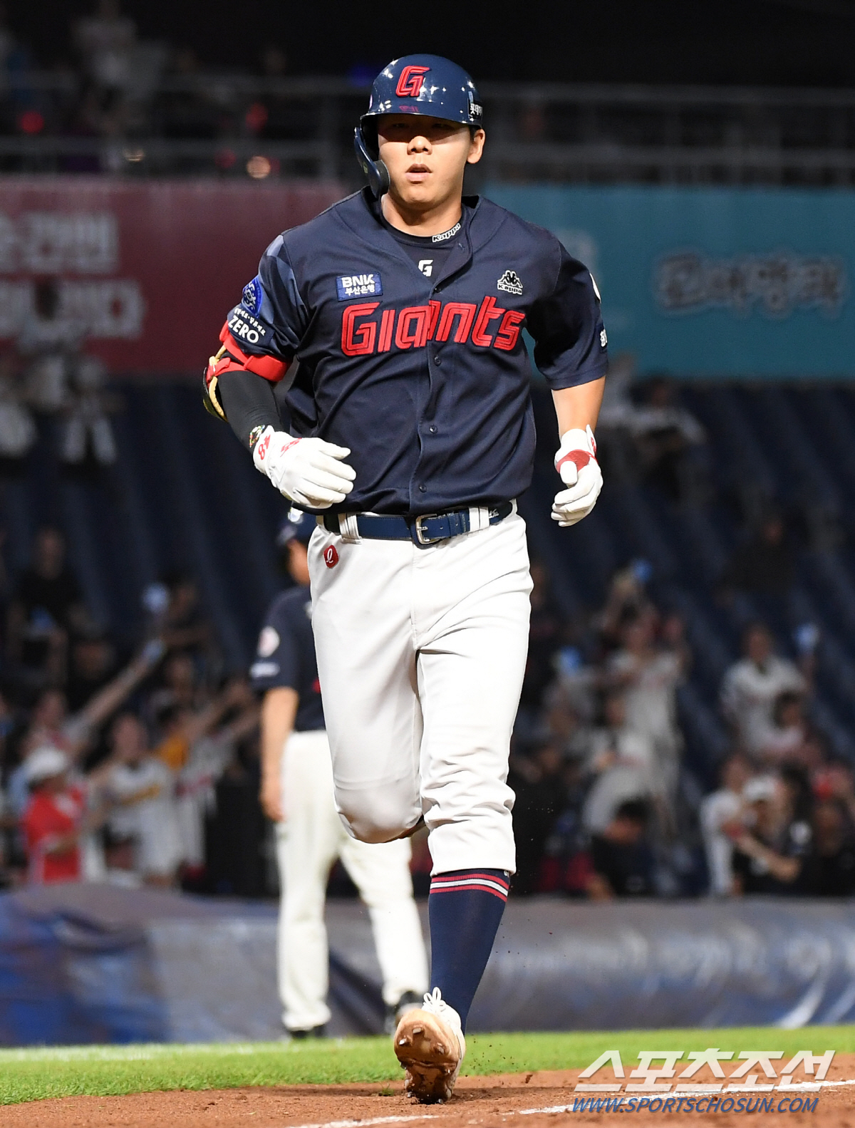 2023 KBO리그 NC 다이노스와 롯데 자이언츠의 경기가 12일 창원NC파크에서 열렸다. 9회초 1사 대타 롯데 이정훈이 솔로포를 날린 뒤 환호하고 있다. 창원=박재만 기자pjm@sportschosun.com/2023.07.12/