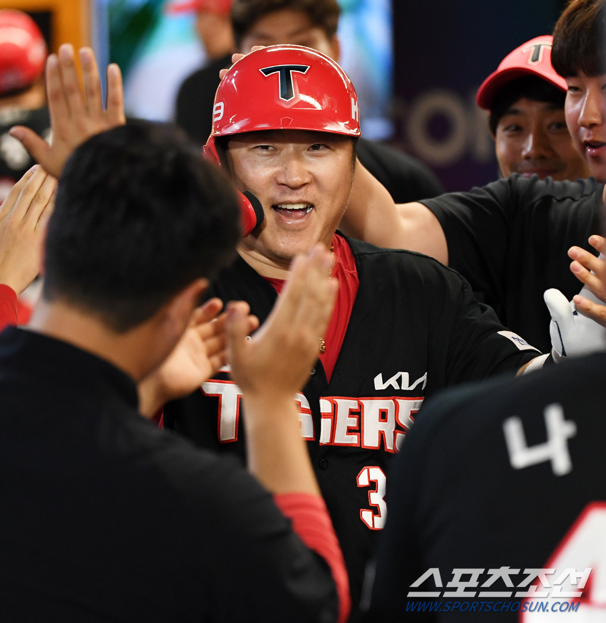 2023 KBO리그 SSG 랜더스와 KIA 타이거즈의 경기가 6일 인천 SSG랜더스필드에서 열렸다. 5회초 선두타자 KIA 최형우가 솔로포를 날린 뒤 환호하고 있다. 인천=박재만 기자pjm@sportschosun.com/2023.07.06/