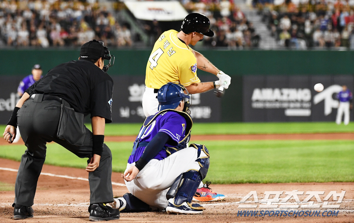 2023 KBO리그 올스타전이 15일 부산 사직구장에서 열렸다. 9회초 2사 1,3루 드림 올스타 뷰캐넌이 마무리 고우석을 상대로 안타를 날리고 있다. 부산=박재만 기자pjm@sportschosun.com/2023.07.15/