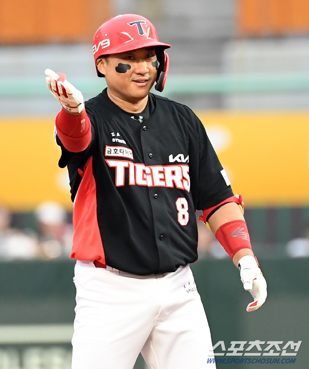 2023 KBO리그 SSG 랜더스와 KIA 타이거즈의 경기가 6일 인천 SSG랜더스필드에서 열렸다. 2회초 2사 2루 KIA 김태군이 역전타를 날린 뒤 환호하고 있다. 인천=박재만 기자pjm@sportschosun.com/2023.07.06/