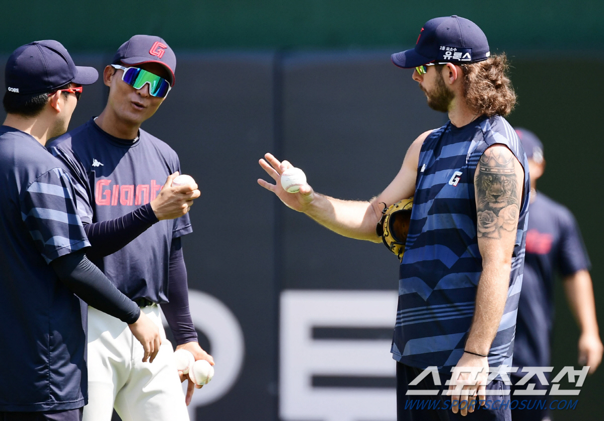 새롭게 만난 롯데 선수들과도 다정하게 인사를 나눴다. 김현욱 투수 코치와도 많은 대화를 나눴다. 새로운 리그, 새롭게 접하는 KBO리그 볼에 대해 한참 동안 이야기를 나눴다.