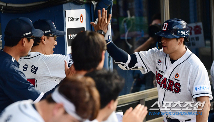 2023 KBO리그 두산베어스와 롯데자이언츠의 경기가 25일 잠실야구장에서 열렸다. 두산 양석환이 3회말 2사 1루에서 로하스 적시타때 득점을 올리고 있다. 잠실=최문영 기자deer@sportschosun.com /2023.07.25/