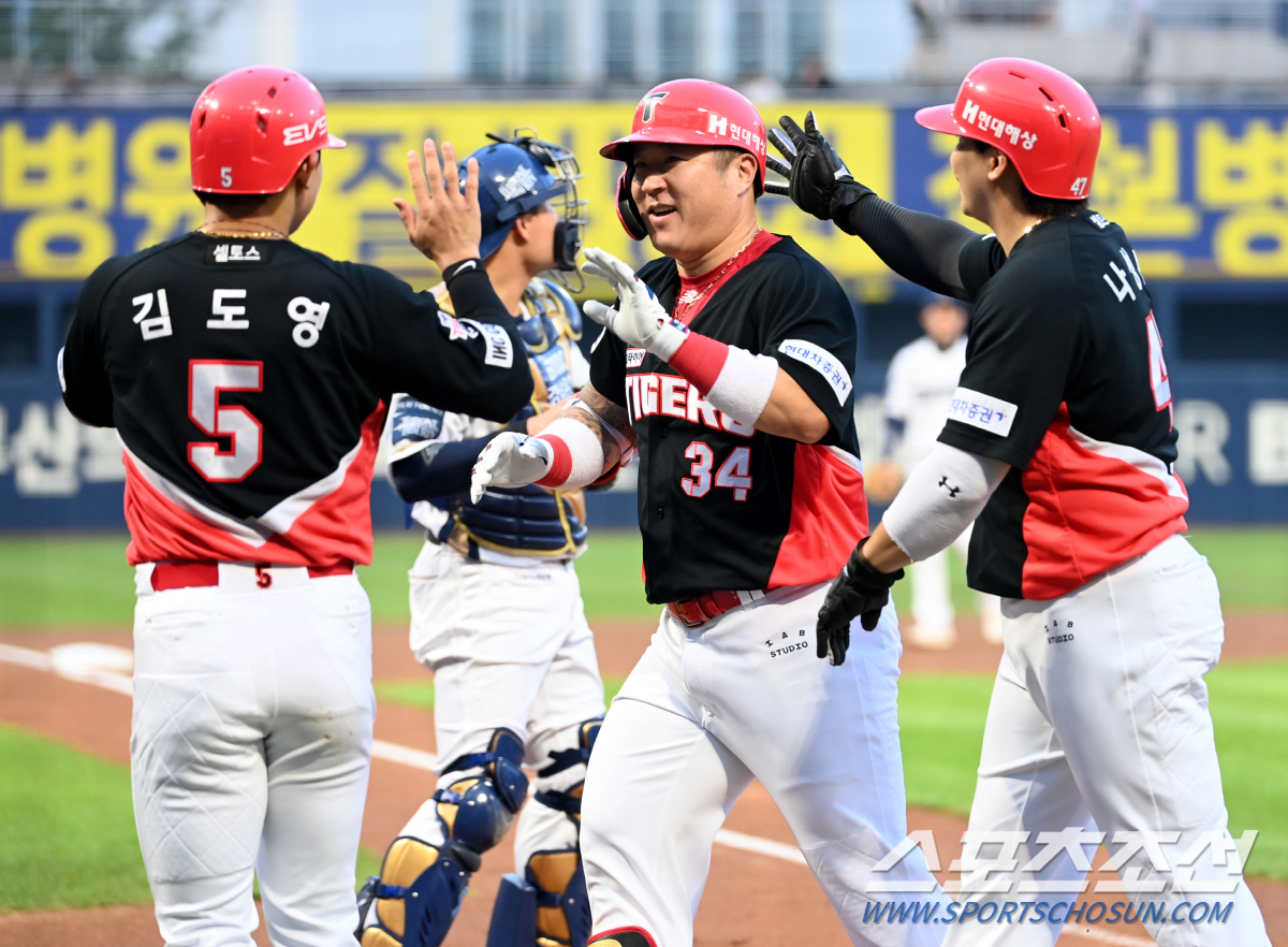 2023 KBO리그 KIA 타이거즈와 NC 다이노스의 경기가 26일 창원NC파크에서 열렸다. 1회초 무사 1,2루 KIA 최형우가 3점홈런을 치고 기쁨을 나누고 있다. 창원=허상욱 기자wook@sportschosun.com/2023.07.26/