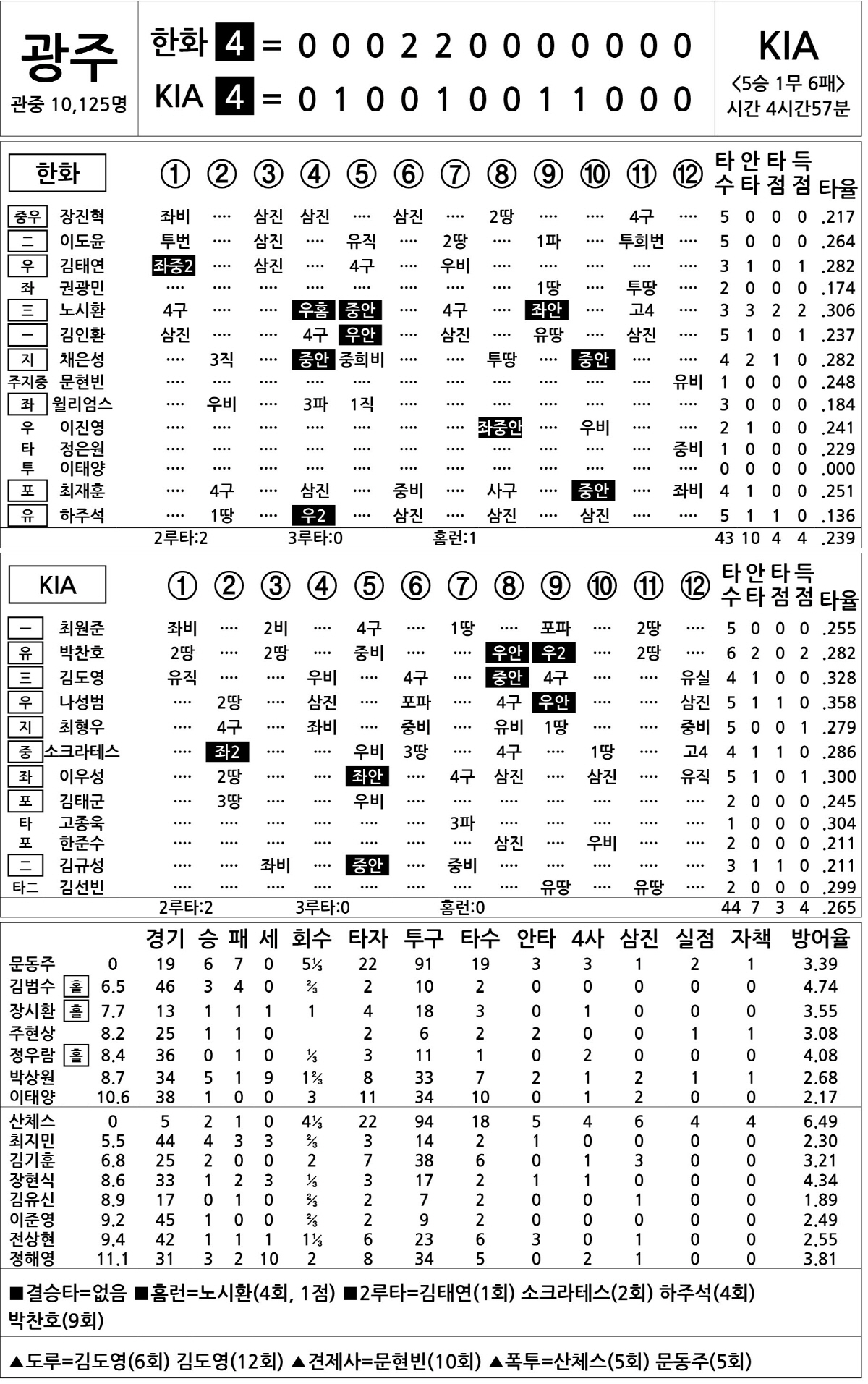 [2023 KBO리그 기록실] 한화 vs KIA (8월 6일)