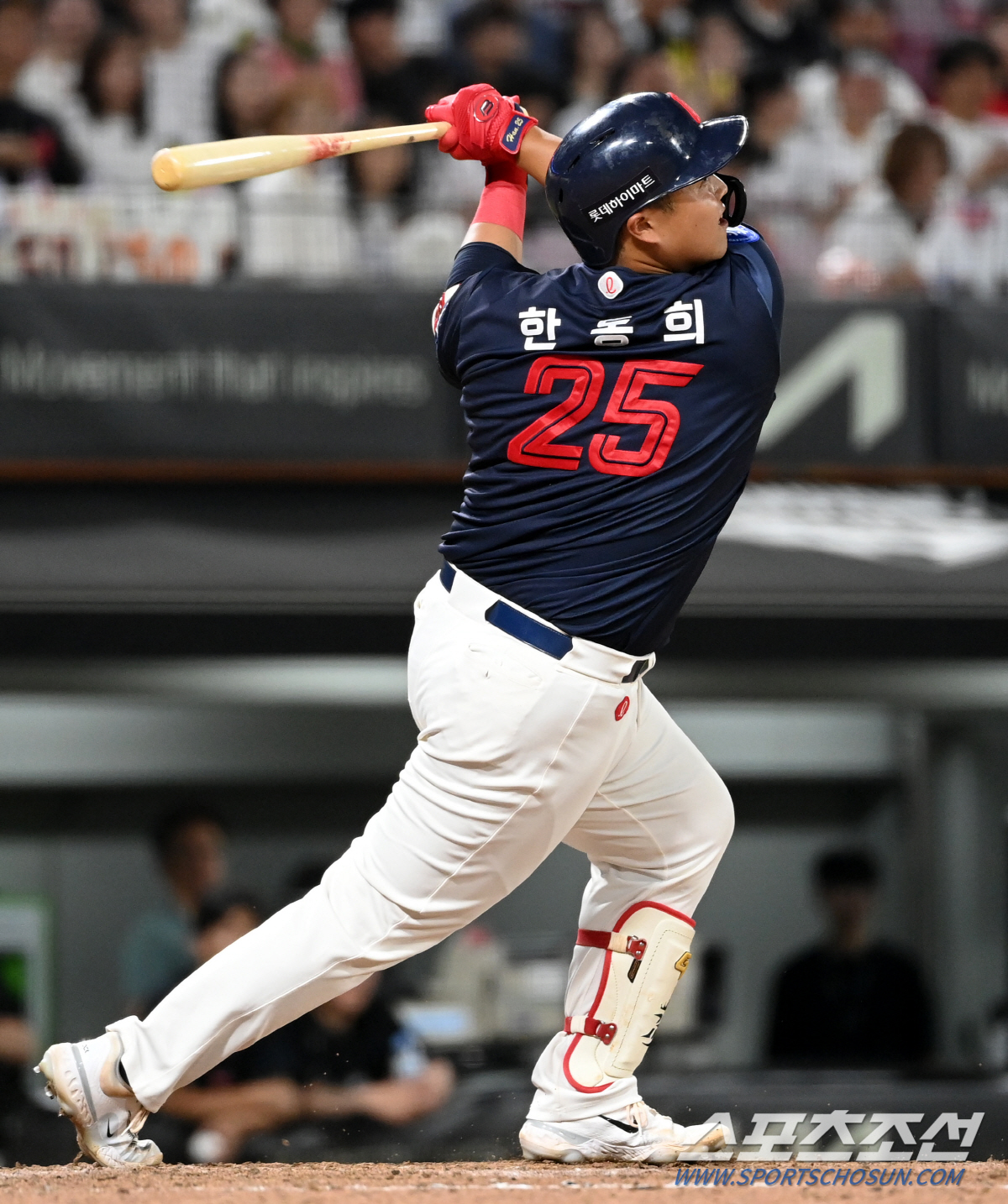| 2023 KBO리그 롯데 자이언츠와 KIA 타이거즈의 경기가 30일 광주 KIA챔피언스필드에서 열렸다. 9회초 롯데 한동희가 안타를 치고 있다. 광주=허상욱 기자wook@sportschosun.com/2023.07.30/ |