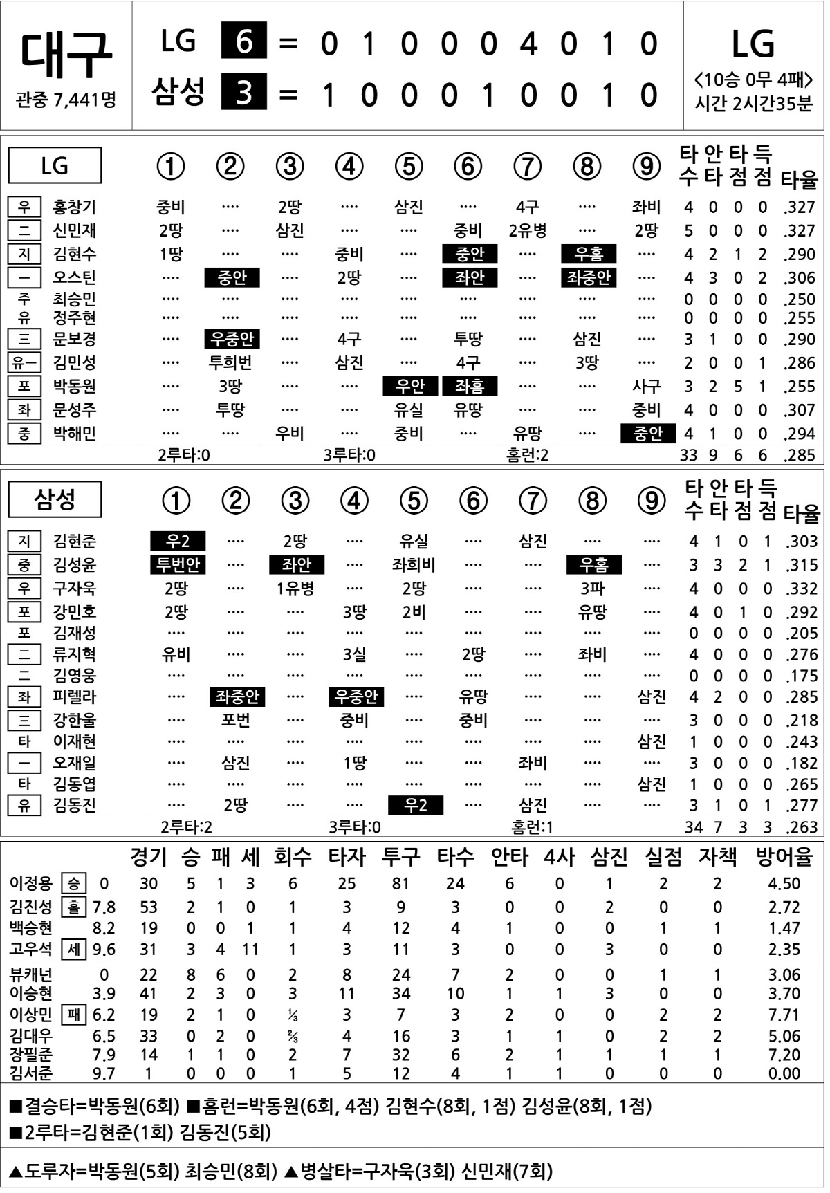 [2023 KBO리그 기록실] LG vs 삼성 (8월 16일)