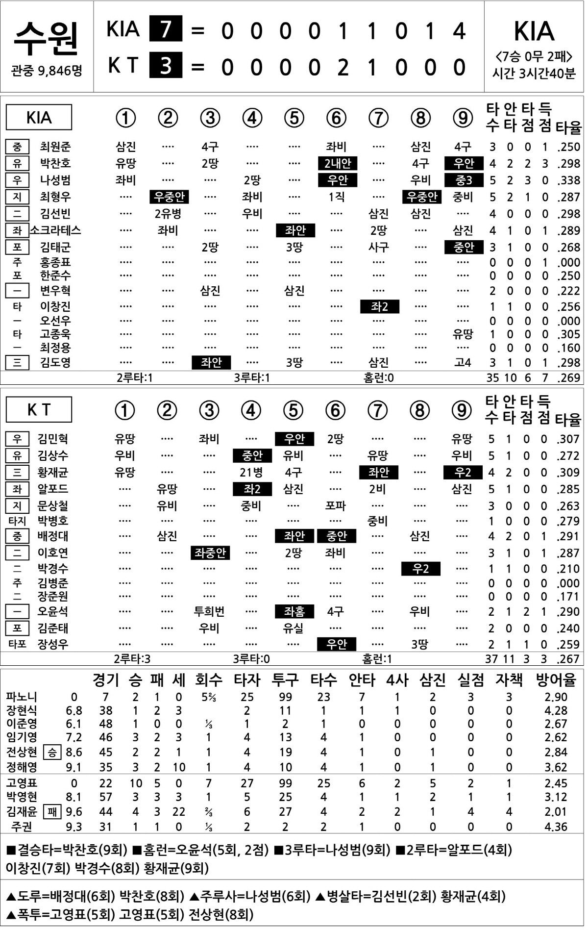 [2023 KBO리그 기록실] KIA vs KT (8월 24일)