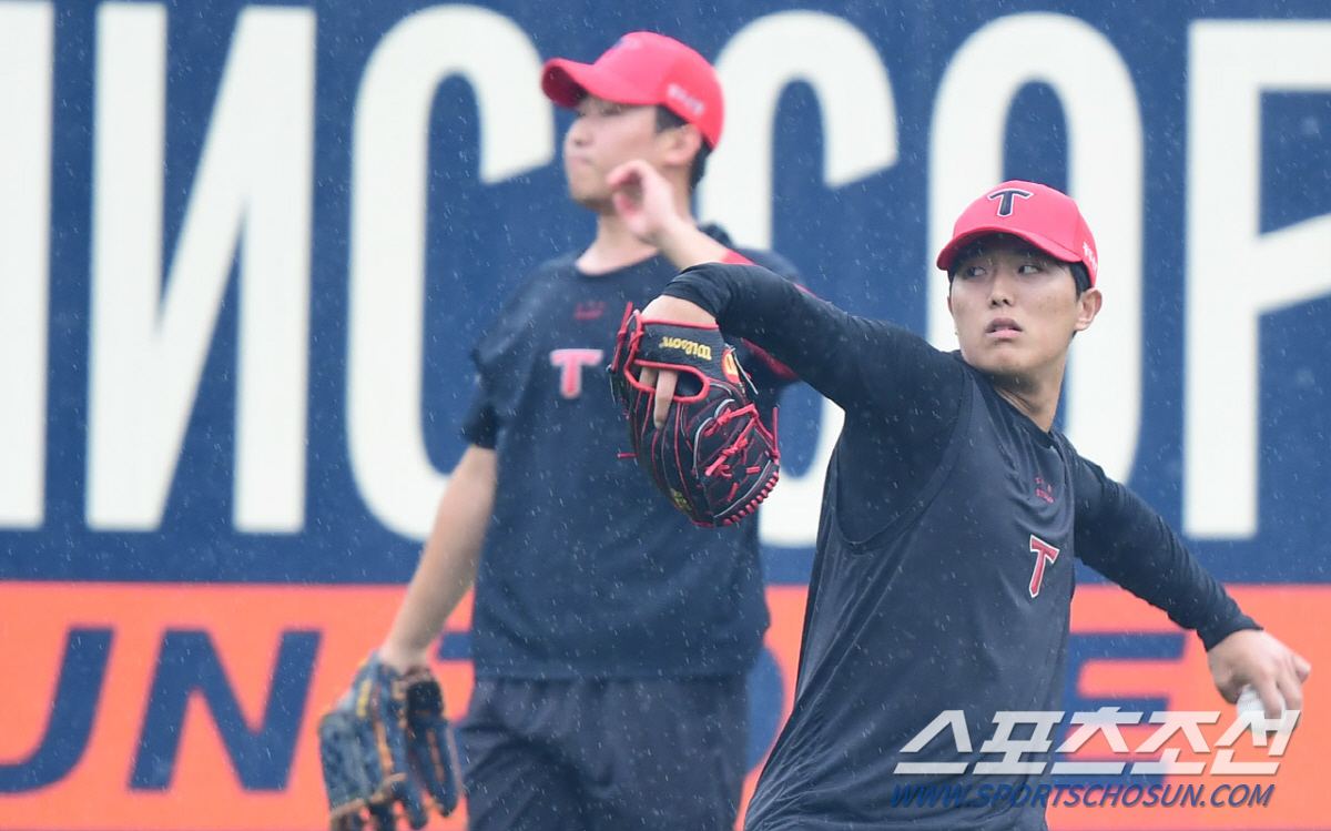 '폭우도 못 말린 열정남 듀오' 이의리-윤영철 '비 맞으며 어깨 예열' [광주 현장]