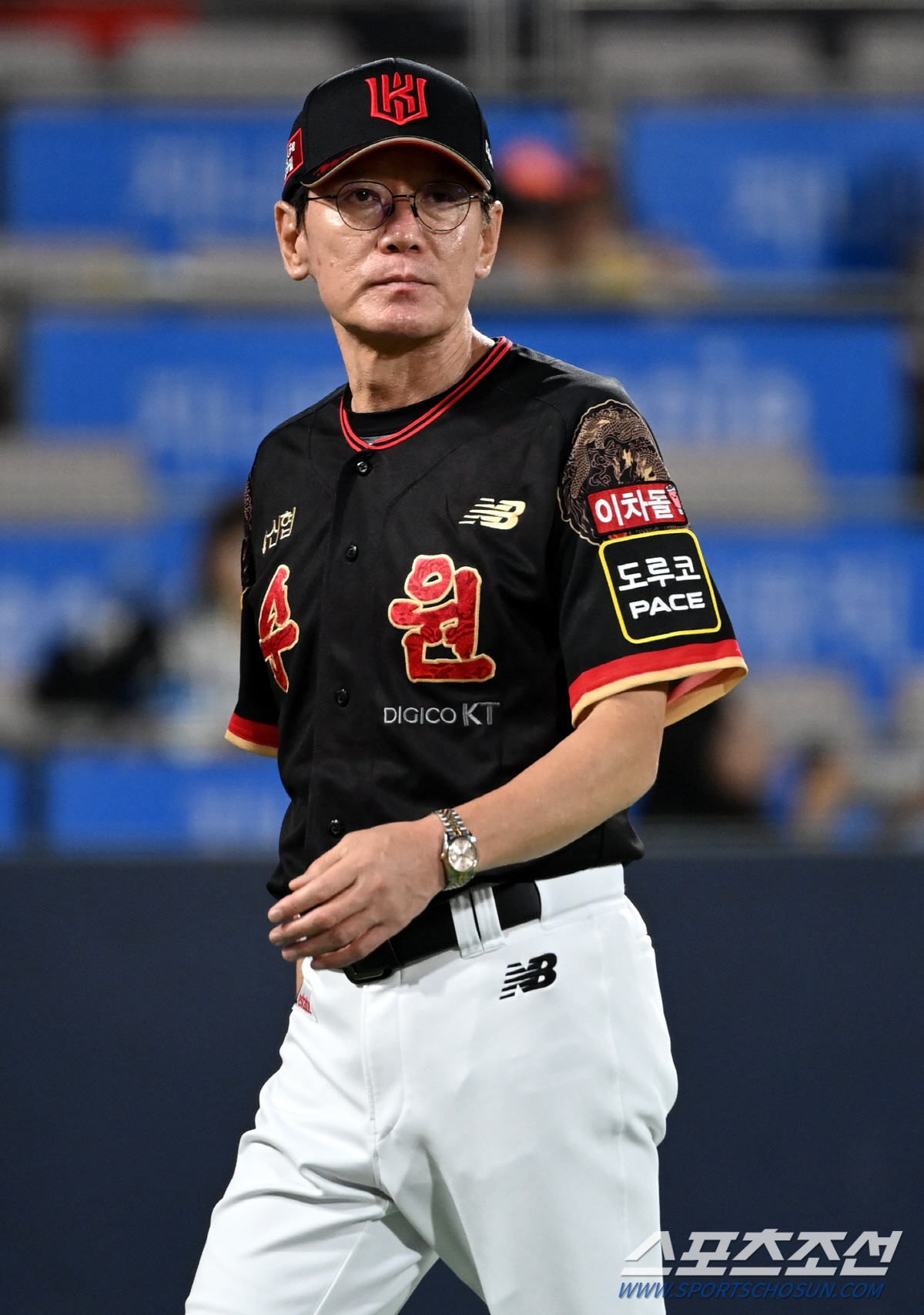 8일 수원KT위즈파크에서 열린 SSG와 KT의 경기, 선수교체를 위해 그라운드에 나선 KT 이강철 감독의 모습. 수원=허상욱 기자wook@sportschosun.com