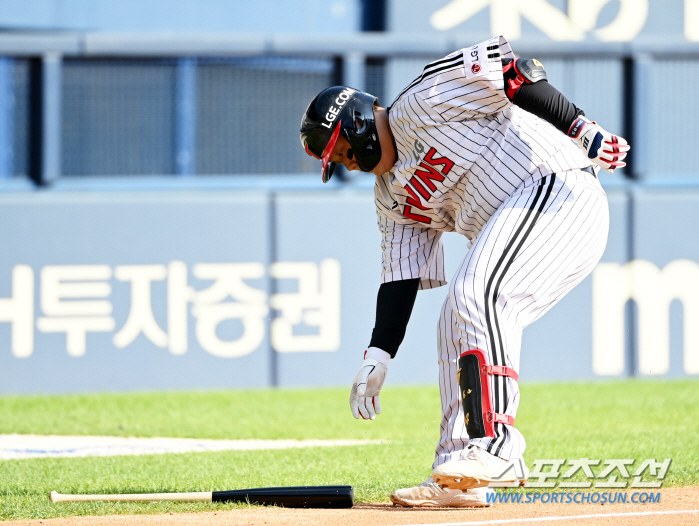 김범석은 포수로서 지명을 받았으나 오른쪽 어깨가 좋지 않아 올해는 퓨처스리그에서 지명타자로만 출전했다. LG가 정규리그 우승을 확정지은 이후부터 1군에서 출전 기회를 얻은 김범석은 지난 5일 롯데 자이언츠전부터 1루수로 나서고 있는 상황.