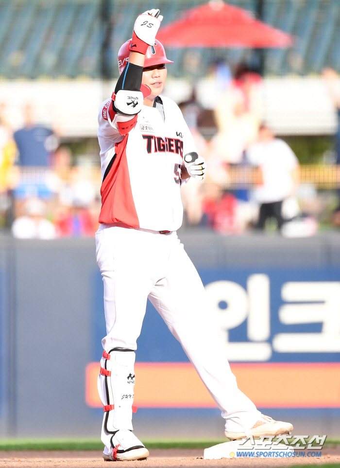 2023 KBO리그 KIA 타이거즈와 KT 위즈의 경기가 24일 광주기아챔피언스필드에서 열렸다. 9회말 1사 KIA 한준수가 안타를 날린 뒤 환호하고 있다. 광주=박재만 기자pjm@sportschosun.com/2023.09.24/