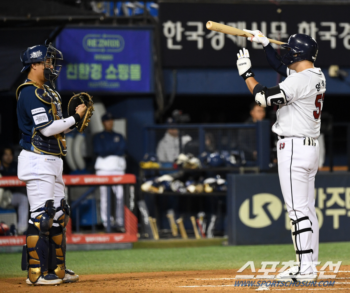 이날 3번 타자 1루수로 선발 출장한 두산 양석환은 첫 타석부터 뜨거운 타격감을 뽐냈다. 앞선 타자 로하스가 동점 솔로포를 날리는 모습을 대기 타석에서 지켜보며 타이밍을 맞추고 있었던 양석환은 NC 선발 이재학과 승부에서 역전포를 터뜨릴 뻔했다.