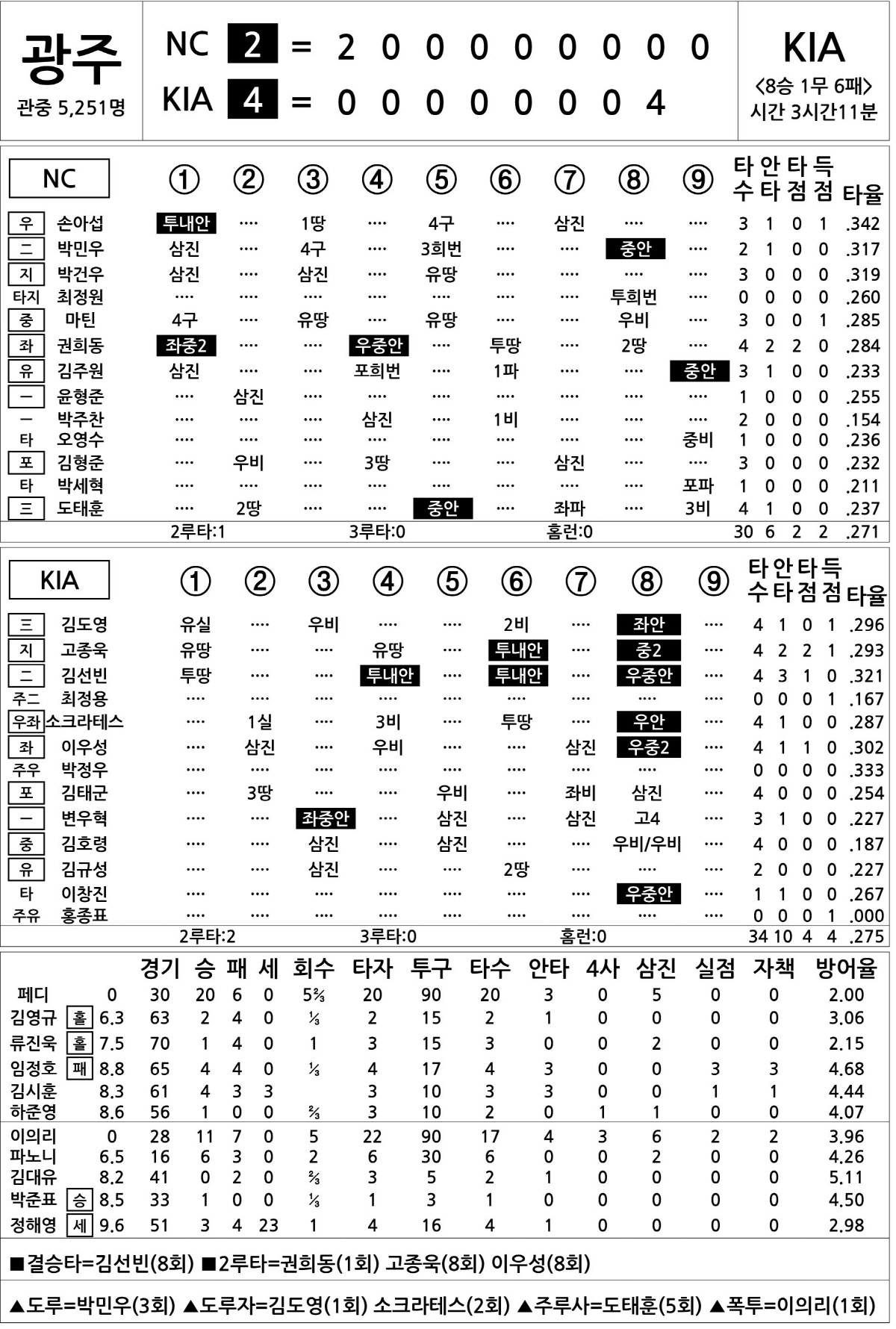[2023 KBO리그 기록실] NC vs KIA (10월 16일)