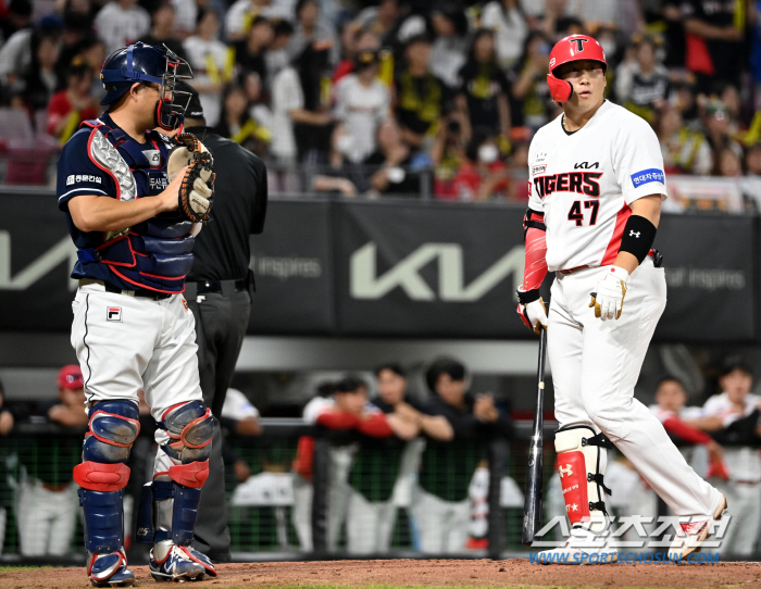 15일 광주KIA챔피언스필드에서 열린 두산과 KIA의 경기, 1회말 KIA 나성범이 삼진판정을 받은 후 의아해하고 있다. 광주=허상욱 기자wook@sportschosun.com/2023.09.15/
