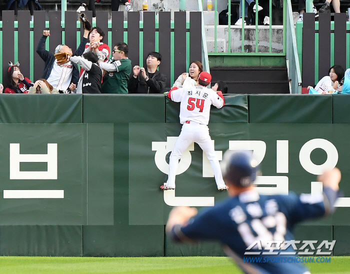 22일 인천 SSG랜더스필드에서 열린 NC와 SSG의 준PO 1차전. 8회초 1사 1루 김성욱의 타구가 좌중간 담장을 넘어갔다. 최지훈이 아쉬워하고 있다. 인천=정재근 기자 cjg@sportschosun.com/2023.10.22/