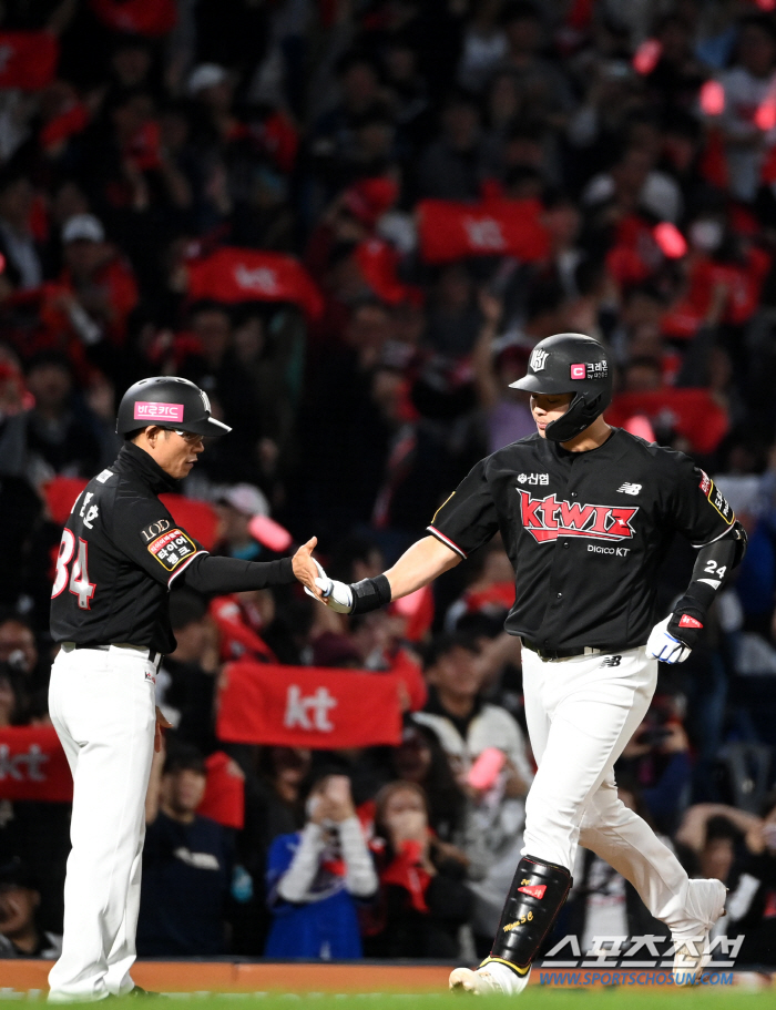 팀이 홈에서 충격의 2연패를 당해 문상철도 마음이 무거웠을 터. 아픔을 3차전 쐐기포로 제대로 날려보냈다. 강백호의 공백을 완벽하게 지우고 있는 문상철과 함께 KT의 마법 같은 가을여정이 시작됐다.