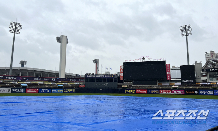 비가 내리는 수원KT위즈파크의 모습을 영상으로 담았다.