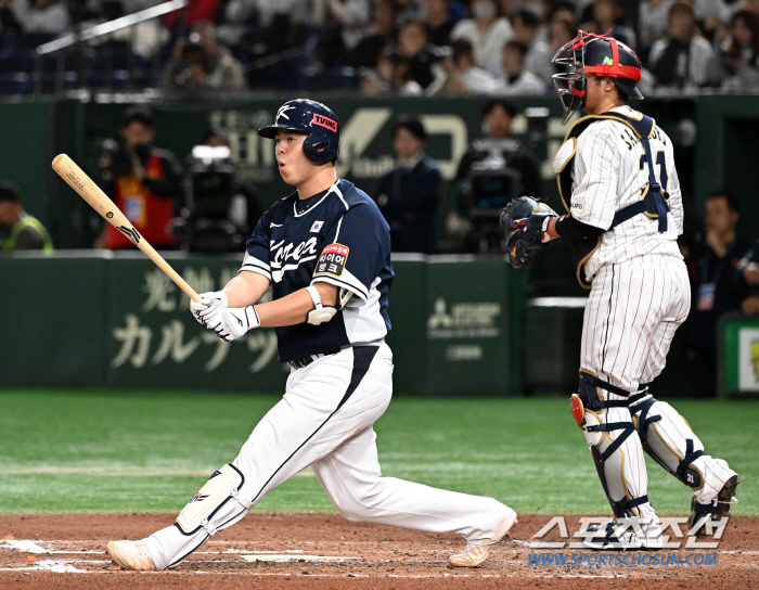17일 일본 도쿄돔에서 열린 2023 아시아 프로야구 챔피언십(APBC) 한국과 일본의 경기. 6회초 2사 한국 노시환이 일본 스미다 치히로의 구위에 놀라고 있다. 도쿄(일본)=박재만 기자pjm@sportschosun.com/2023.11.17/
