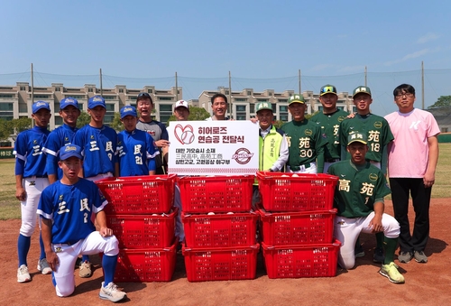 (서울=연합뉴스) 이대호 기자 = 프로야구 키움 히어로즈 퓨처스팀인 고양 히어로즈가 대만 가오슝 소재 고등학교 야구부에 연습구를 전달했다.