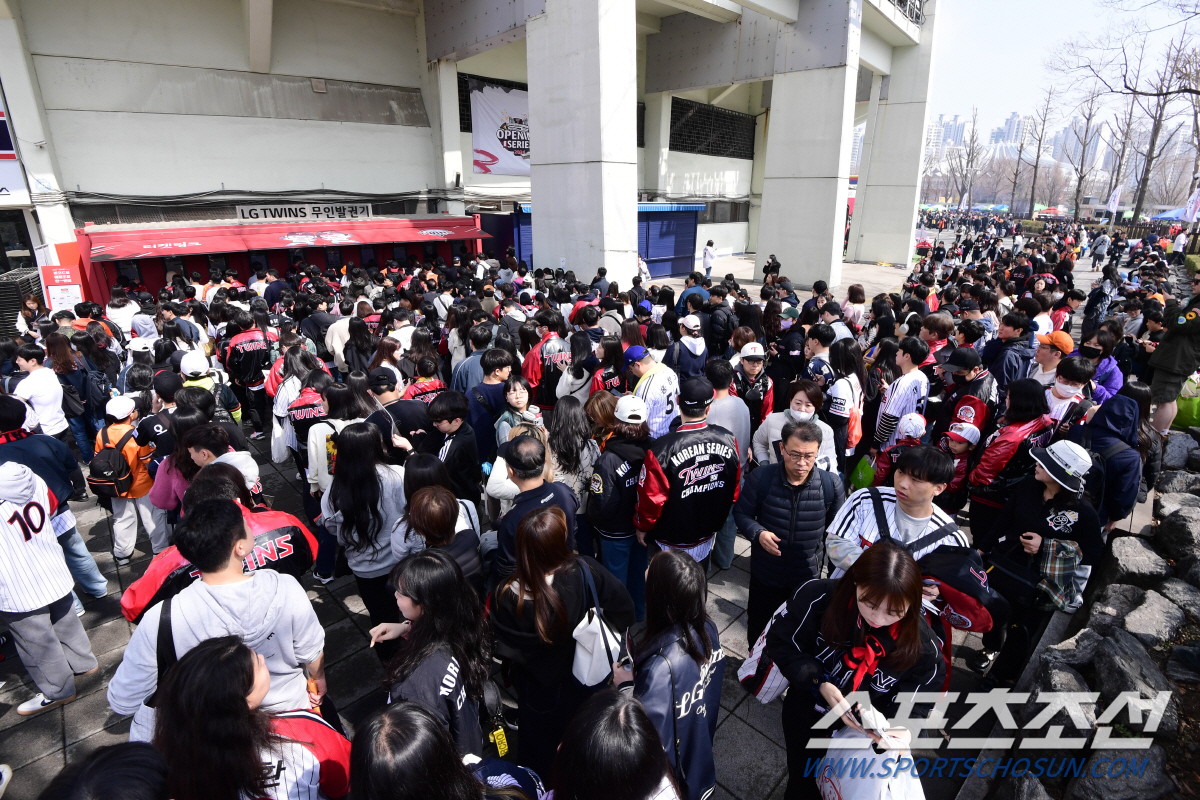[잠실=스포츠조선 송정헌 기자] 구름 관중이 몰려들었다. 개막전이 열린 잠실구장에 LG 팬만큼 한화 팬들도 많이 찾았다.