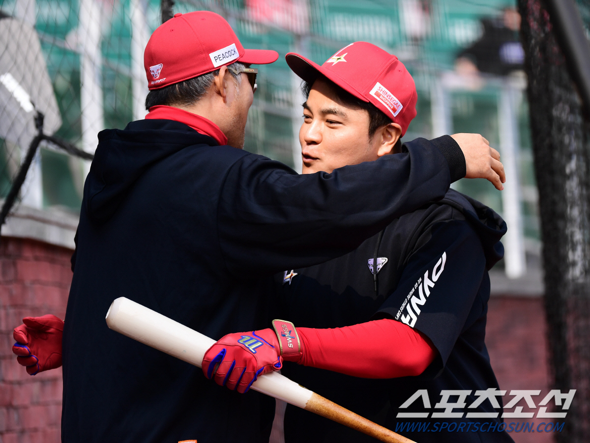 랜더스필드에 돌아온 추신수는 밝은 표정으로 훈련을 했다. 이숭용 감독과 반가운 포옹을 나눴고 반기는 후배들과도 반갑게 인사했다.