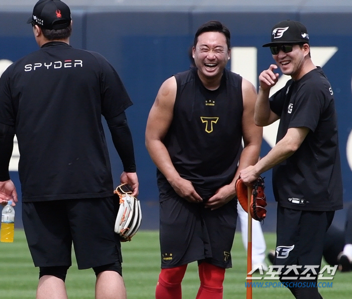 김 코치를 보자마자 김태군이 우렁찬 목소리로 "할렐루야"를 외치며 두 팔을 번쩍 들었다.